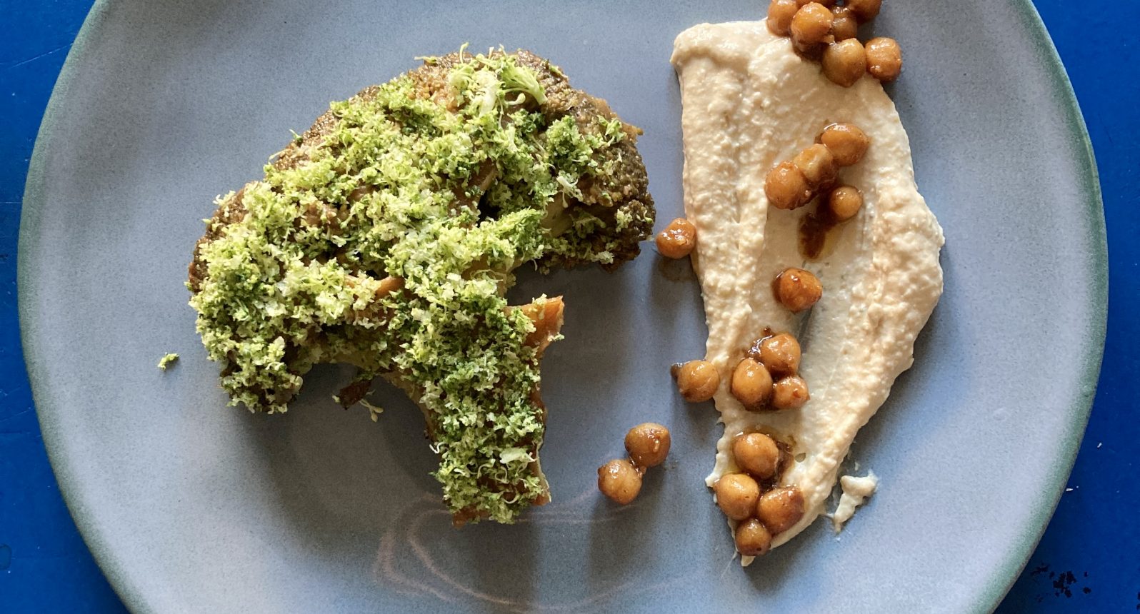Prends un beau brocoli. Coupe 2 beaux steaks. Prépare la marinade en mélangeant jus de citron, huile d’olive, sirop d’érable, miso, sel et poivre. Malaxe les steaks avec la marinade et laisse reposer 20 min. Puis 2 façons de cuire : soit au four, à 180°, pendant 25 min, en retournant de temps en temps, soit dans une sauteuse, à feu vif 3 min de chaque côté puis feu moyen avec un couvercle à feu moyen pendant 15 min. Il faut que ta pointe du couteau entre facilement dans le tronc. Le bail super stylé c’est d’utiliser un légume et de le préparer et le cuire comme une pièce de viande. Mettons du respect sur les légumes. Bientôt y en aura plus.